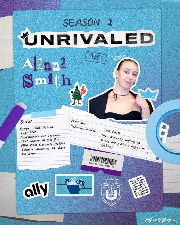 【阿兰娜-史密斯加入Unrivaled联赛 标志着其加入四川队传闻不实】今天,由斯图尔特和科利尔发起的Unrivaled联赛公布第七批入选球员,山猫队内线阿兰娜-史密斯名列其中。